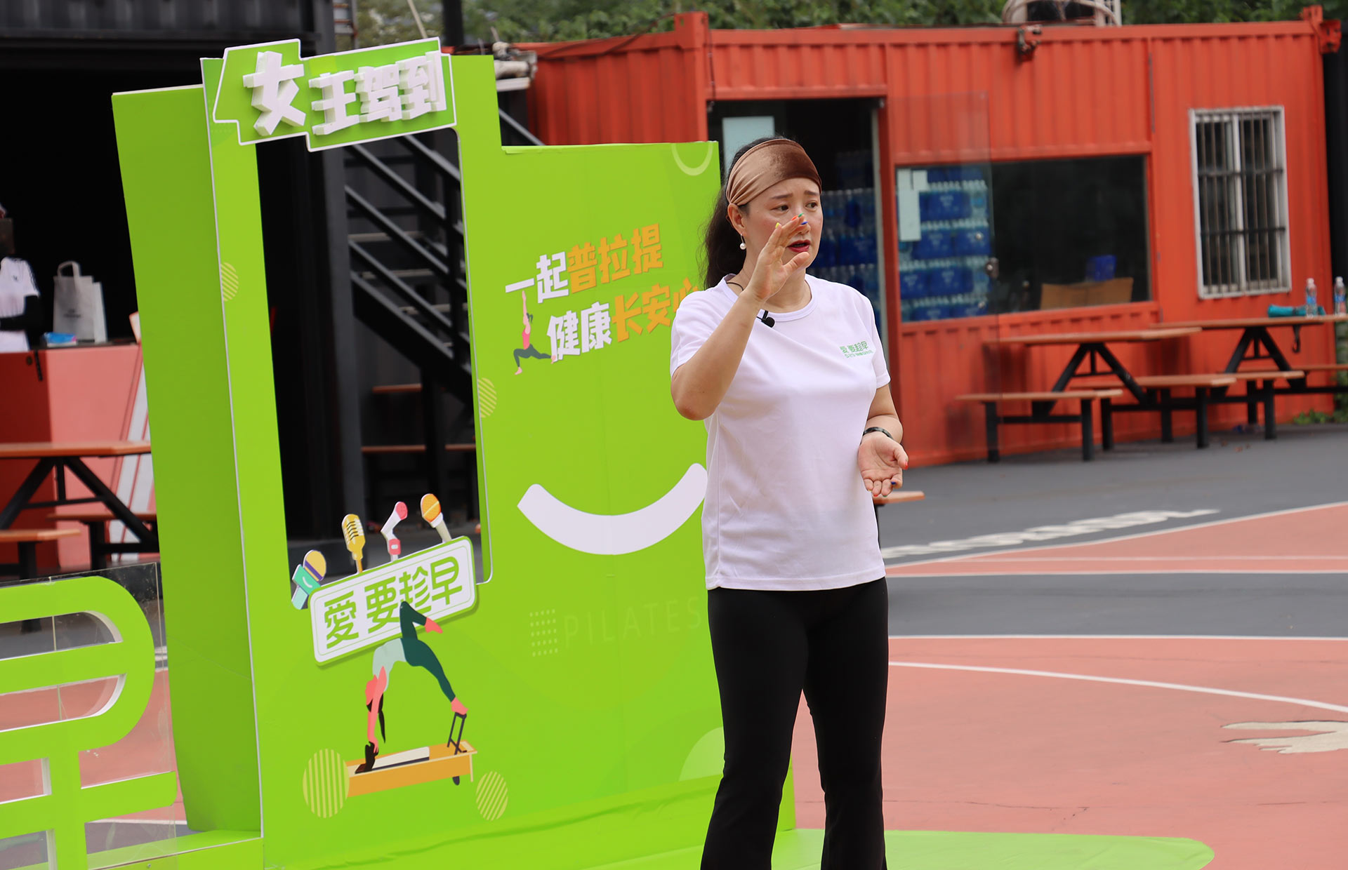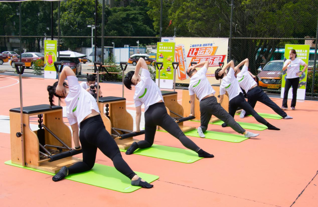 在現場,馬老師詳細演示、講解了“腸道普拉提”動作,并帶領30多位普拉提愛好者一起展示。