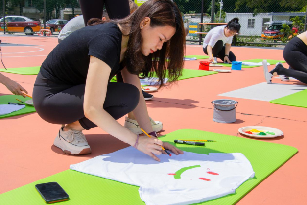 參與活動的普拉提愛好者,還提起畫筆,一起在T恤上留下了各種創(chuàng)意的涂鴉,以表達自己對于“愛,要趁早”、“健康與運動”的理解。