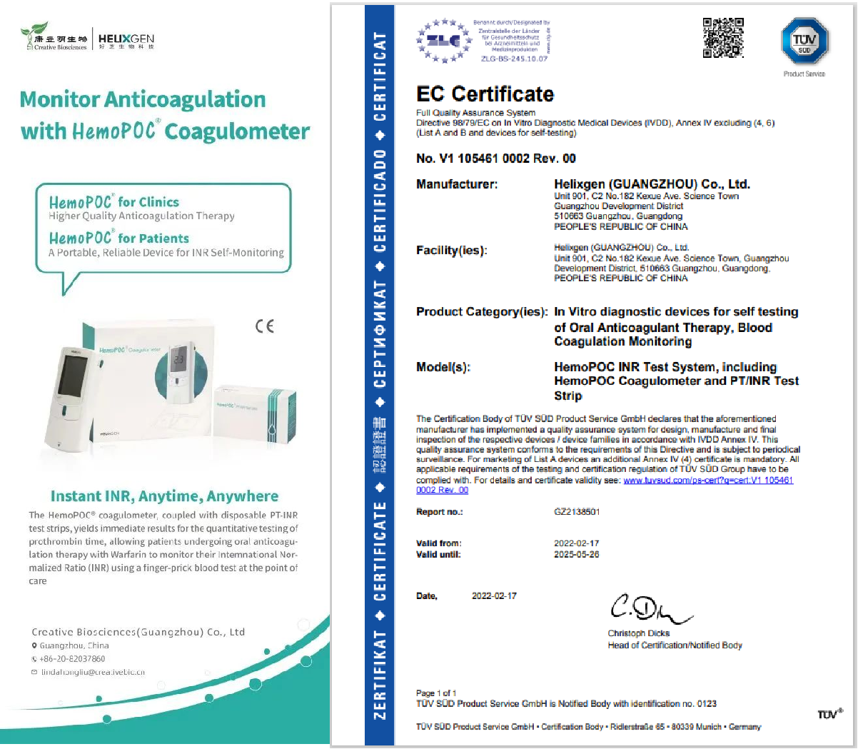 HemoPOC®凝血檢測儀是一款便攜式凝血檢測設備,與配套的檢測卡組成。HemoPOC®凝血檢測系統(tǒng),用于定量測定新鮮指尖毛細血管血的凝血酶原時間。該系統(tǒng)操作簡單,滿足即時檢測及床旁檢測的應用需求,增強抗凝管理和慢病管理的有效性。