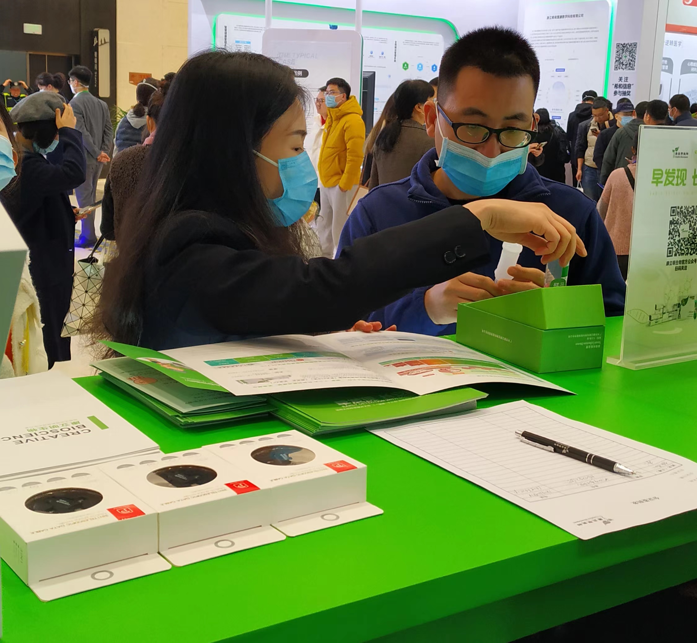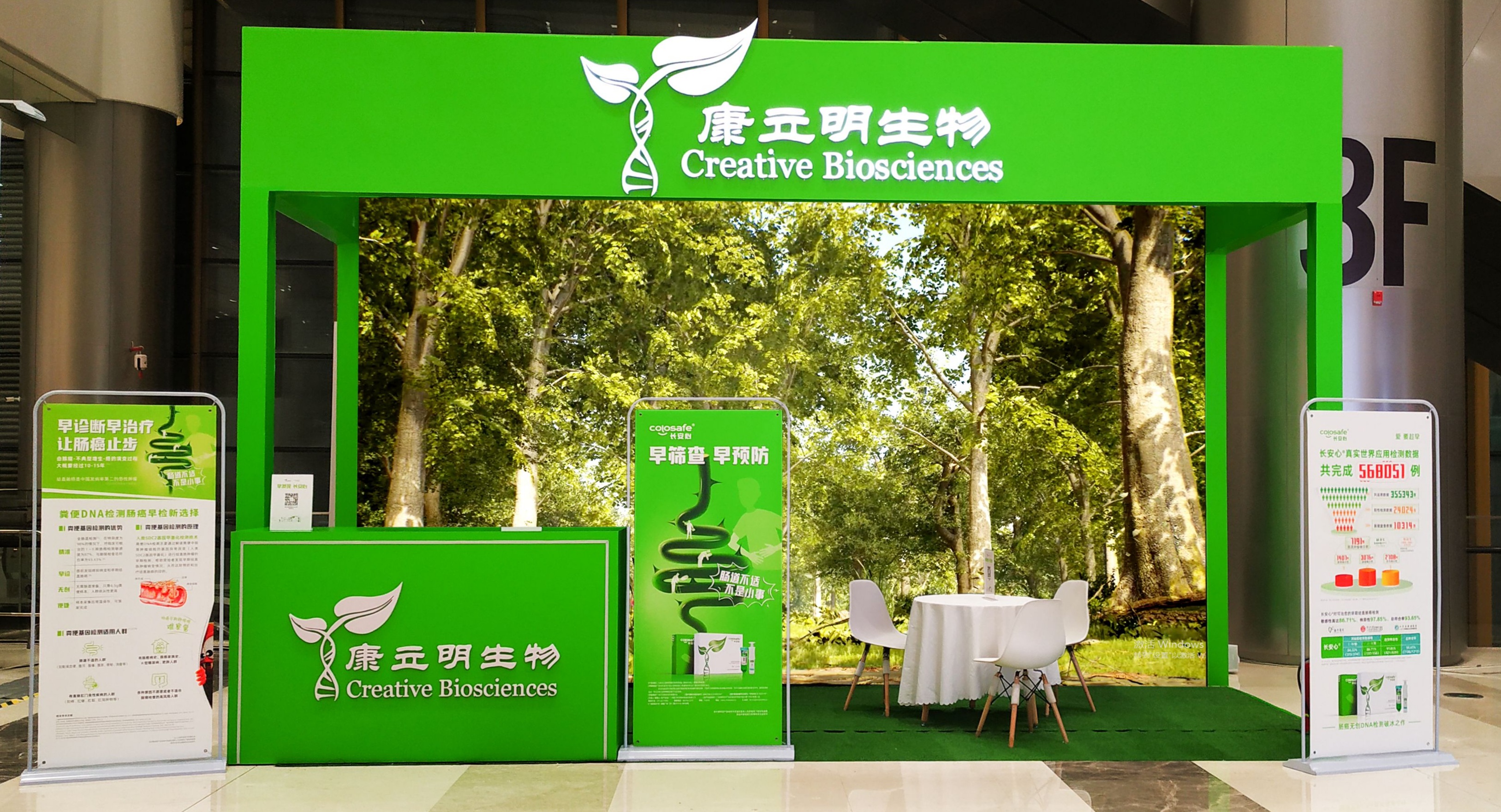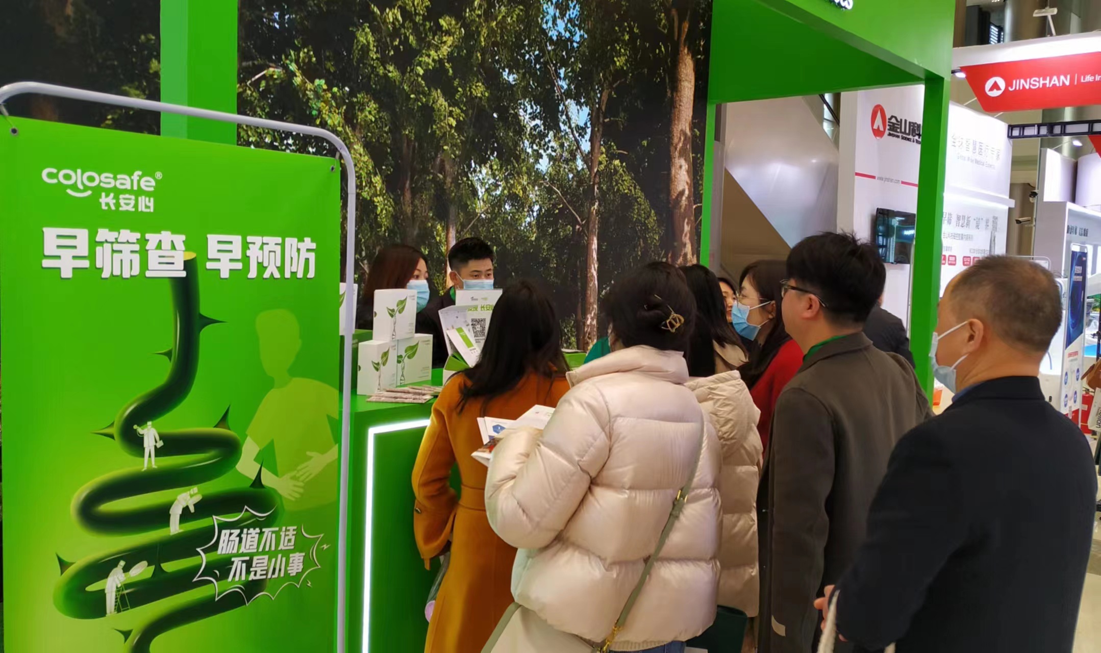 康立明生物攜長(zhǎng)安心®糞便DNA腸癌檢測(cè)產(chǎn)品參展??盗⒚魃镎刮灰源笞匀粸樵兀源砩腿f(wàn)物生長(zhǎng)的綠色為抽象概念,構(gòu)建出一個(gè)Green Box,與現(xiàn)場(chǎng)展出的長(zhǎng)安心®小盒子,在形態(tài)到寓意上相呼應(yīng),吸引了眾多專(zhuān)家、嘉賓到康立明生物展位打卡、交流,探討長(zhǎng)安心®為健康管理系統(tǒng)提供的價(jià)值與成效。