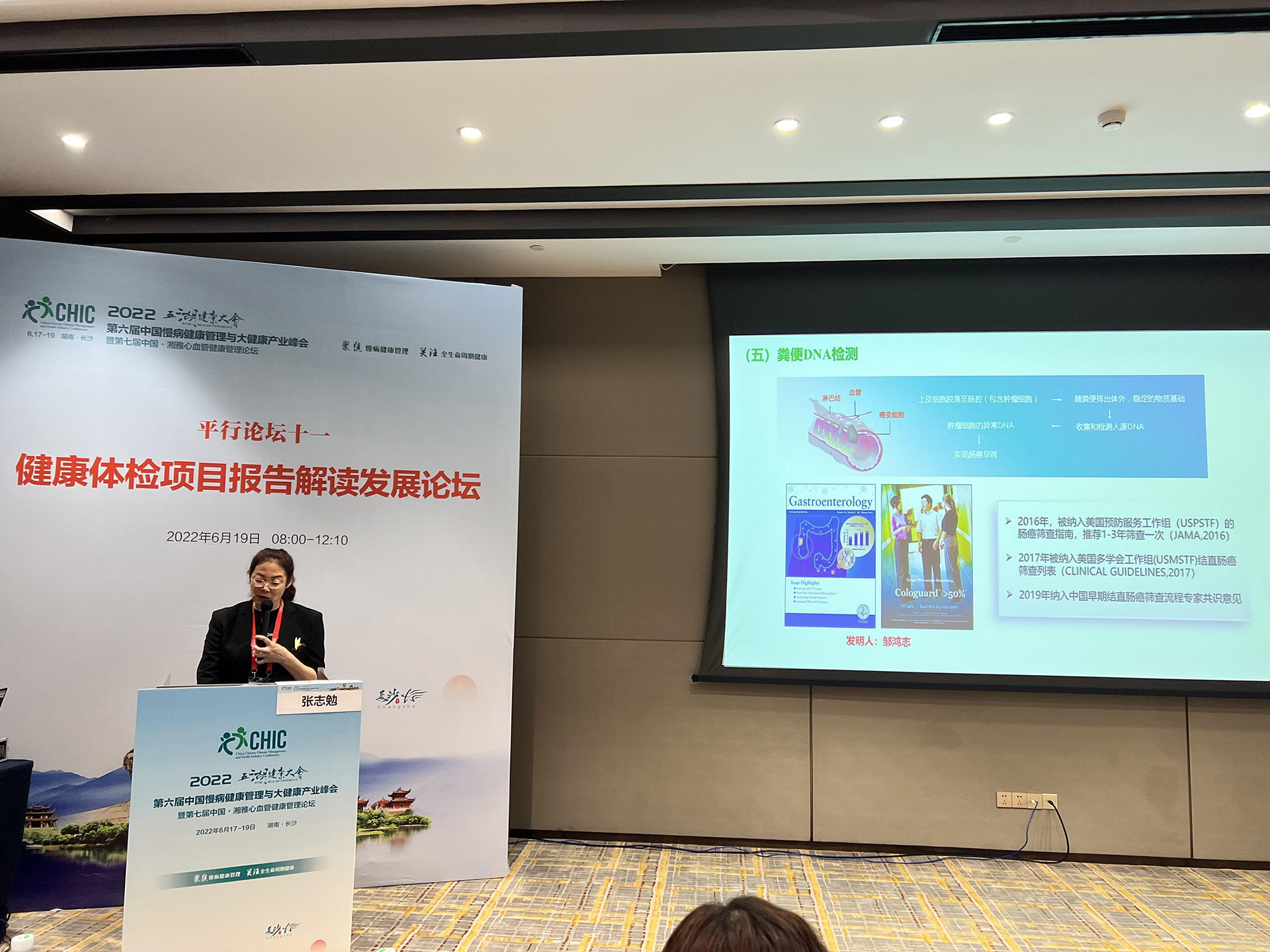 在平行論壇——健康體檢項目報告解讀發(fā)展論壇中,山東大學齊魯醫(yī)院健康管理中心張志勉主任做了題為《健康管理學科的結直腸癌篩查方案》的專題報告,報告中分享了糞便SDC2基因甲基化檢測新技術應用于大腸癌無創(chuàng)檢測的優(yōu)勢。