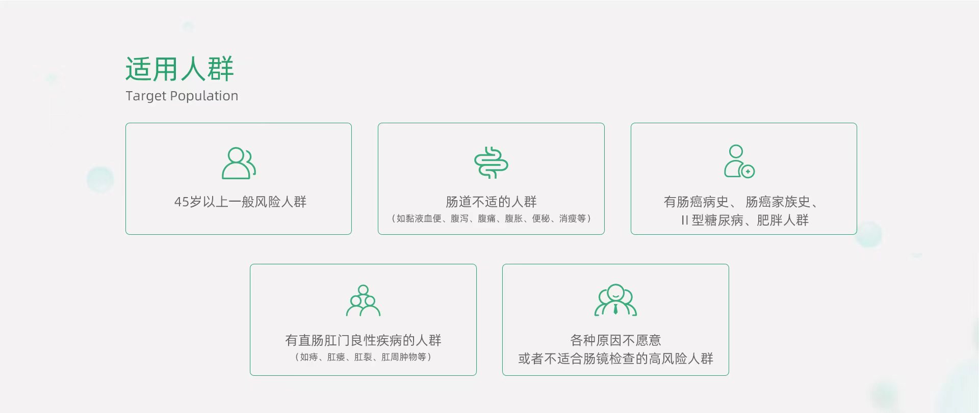 腸癌無創(chuàng)檢測破冰之作,2018年率先獲批上市,僅需在家采集4.5克糞便樣本,即能實現變異基因抓取,幫助發(fā)現患者早期腸癌病變情況。