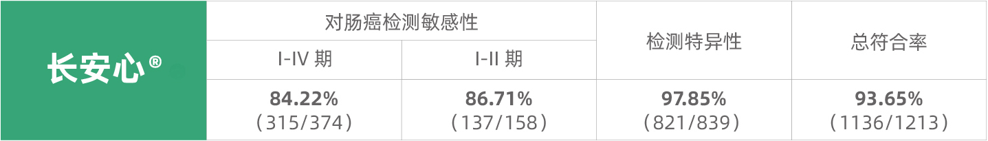 注: n=1213,其中結直腸癌374例,非結直腸癌839例; Kappa值=0.85, Kappa>0.75, 說明產品與金標準(腸鏡+病理)一致性好