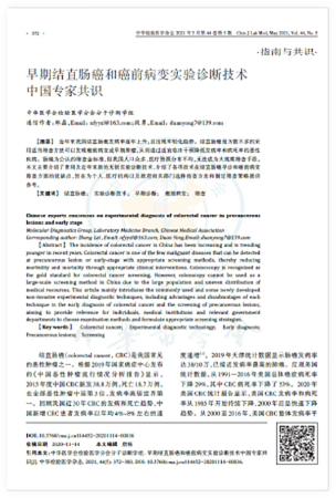 [2]中華檢驗醫(yī)學雜志2021年5月第44卷第5期《早期結直腸癌和癌前病變實驗診斷技術中國專家共識》